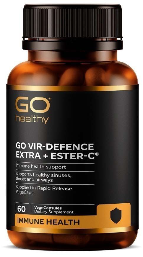 GO VIR-DEFENCE EXTRA + ESTER-C® contains high strength olive Leaf, echinacea, ester-C® and immune supporting ingredients. It is a complex immune health blend. Supports the body’s normal immune defenses for healthy sinuses, throat and airways.